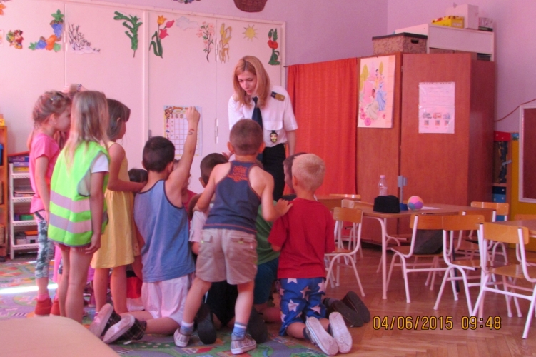 Borsodnádasdi kisgyermekeknek tartott baleset- és bűnmegelőzési előadást az Ózdi Rendőrkapitányság munkatársa.