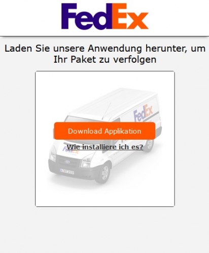A linkre kattintva a FedEx csomagküldő-szolgálat arculati elemeivel ellátott weboldal jelenik meg, ahol egy alkalmazás letöltésére nyílik lehetősége. Ne töltse le az alkalmazást, mert az kártékony kódot tartalmaz, mellyel az elkövetők hozzáférhetnek az eszközén tárolt adataihoz, arról hívásokat vagy szöveges üzenetek küldését kezdeményezhetik!
