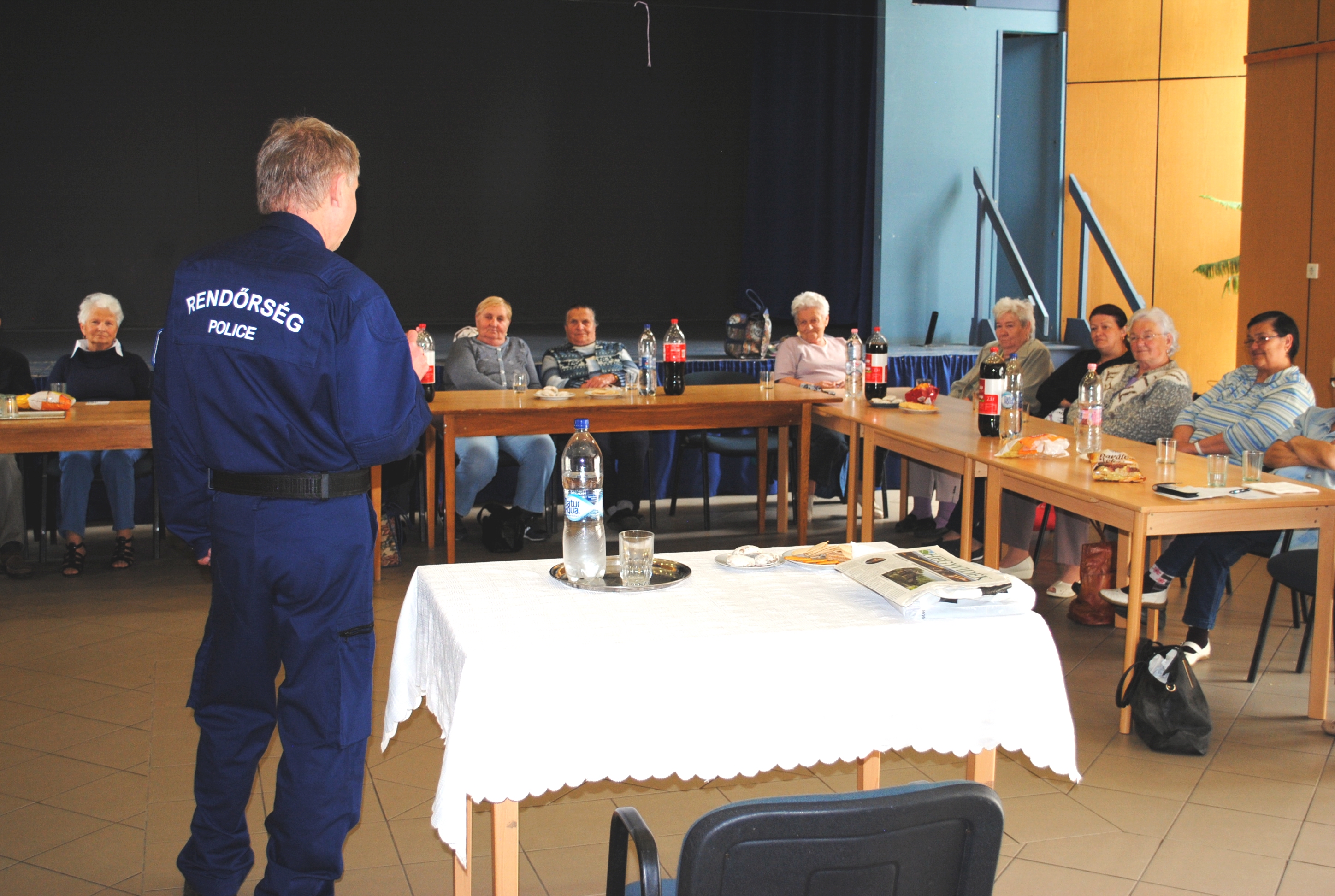 Előadás az iskolában, a nyugdíjas klub tagjainak, kerékpár-regisztráció és közös járőrözés a településen.
