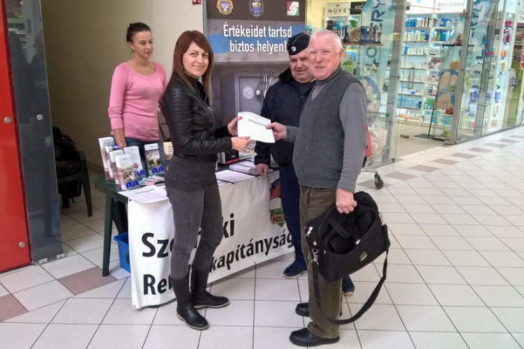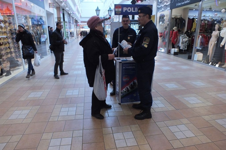 A bűnmegelőzési munkatársak ismét egy szegedi bevásárlóközpontban adtak prevenciós tanácsokat a vásárlóknak.