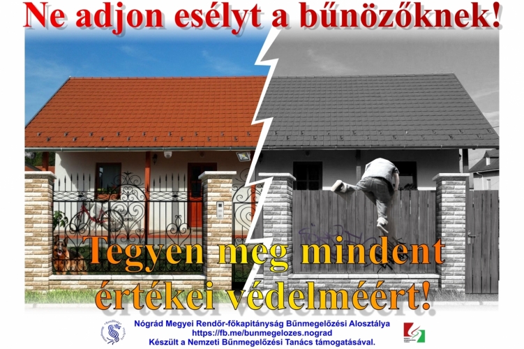 Kérjük, fogadja meg a Nógrád Megyei Rendőr-főkapitányság bűnmegelőzési tanácsait!