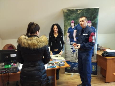 A toborzó csoport tagjai az állampolgároknak felvilágosítást adtak a jelentkezés és a képzés feltételeiről.