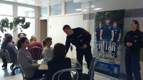 A toborzó csoport tagjai felvilágosítást adtak a jelentkezés és a képzés feltételeiről. Többen jelentkezési egységcsomagot is vittek magukkal.