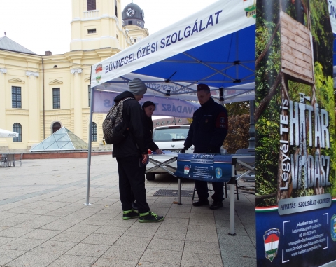 A Hajdú-Bihar Megyei Rendőr-főkapitányság toborzócsoportja 2016. október 29-én Debrecen főterén várta a rendőri hivatás iránt érdeklődőket. A rendőrök a határvadász-képzés felvételi eljárásáról, az alkalmassági vizsgálatok részleteiről és a várható fizikai felméréssel kapcsolatos feladatokról adtak bővebb információt és szóróanyagot a debrecenieknek.