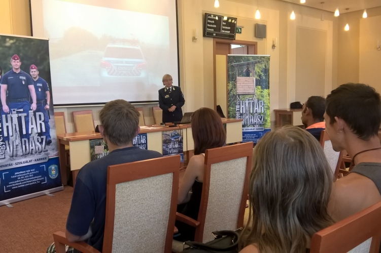 Beszédében a hivatás iránt érdeklődők számára adott hasznos információkat a felvételi követelményekről, az illetményről, valamint az egyéb juttatásokról.