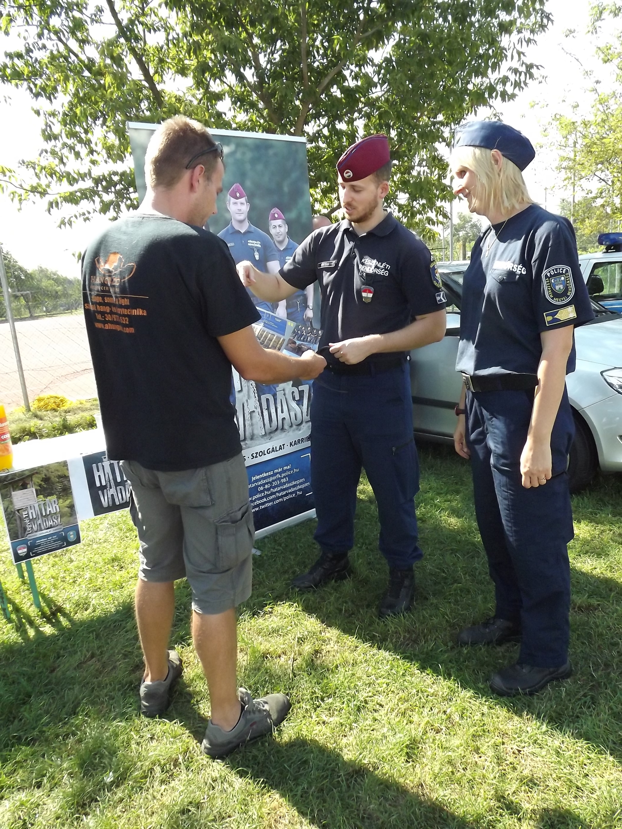 A nagyobb tömeget vonzó színes rendezvény keretében a Készenléti Rendőrség toborzó munkatársa tájékoztatta a határvédelmi feladatok ellátása iránt érdeklődőket a határvadász egységbe történő felvételi követelményekről, a jelentkezés lehetőségeiről, módjáról, az illetményről és az egyéb juttatásokról.