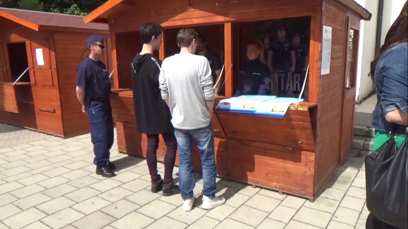 A Csongrád megyei rendőrök Makón, a Hagymaház előtt folytatták a határvadászok toborzását.