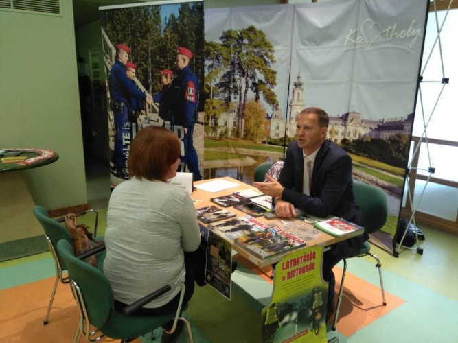 A Zala Megyei Rendőr-főkapitányság toborzó csoportja a keszthelyi Balaton Színházban tartott állásbörzére települt ki 2018. október 11-én.