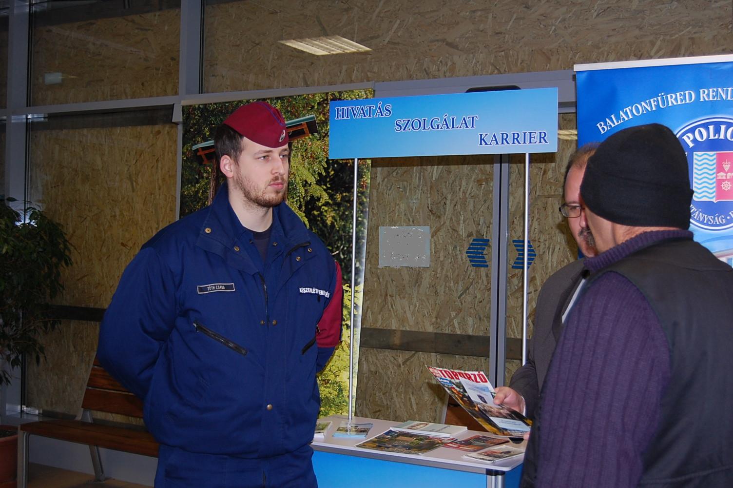 A balatonfüredi vasútállomáson és buszpályaudvaron 2016. december 14-én toboroztak a balatonfüredi rendőrök. A helyi kapitányság toborzó csoportjának tagja és a Készenléti Rendőrség munkatársa a határvédelmi feladatok ellátása iránt érdeklődőket tájékoztatta.
