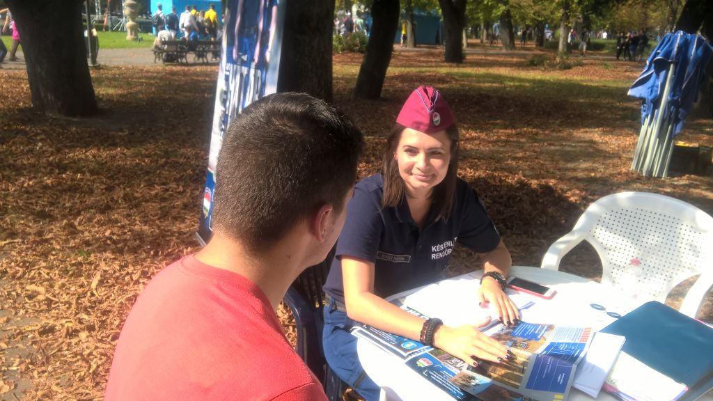 A Heves Megyei Rendőr-főkapitányság toborzó csoportja 2016. szeptember 20-án az egri Érsek-kertben a várta a határvadász-képzés iránt érdeklődőket.