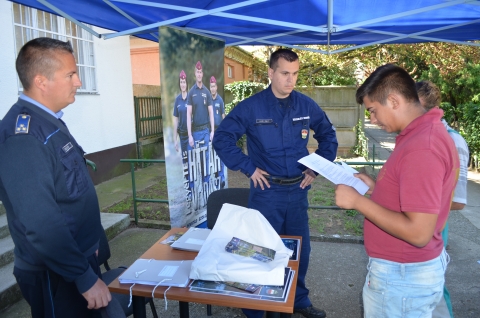 A toborzó csoport tagjai felvilágosítást adtak a jelentkezés és a képzés feltételeiről. Többen jelentkezési egységcsomagot is vittek magukkal.