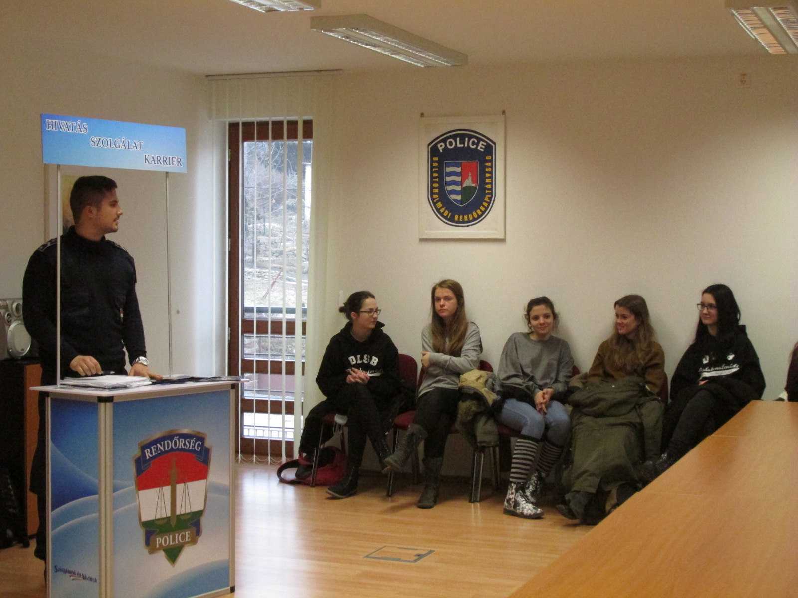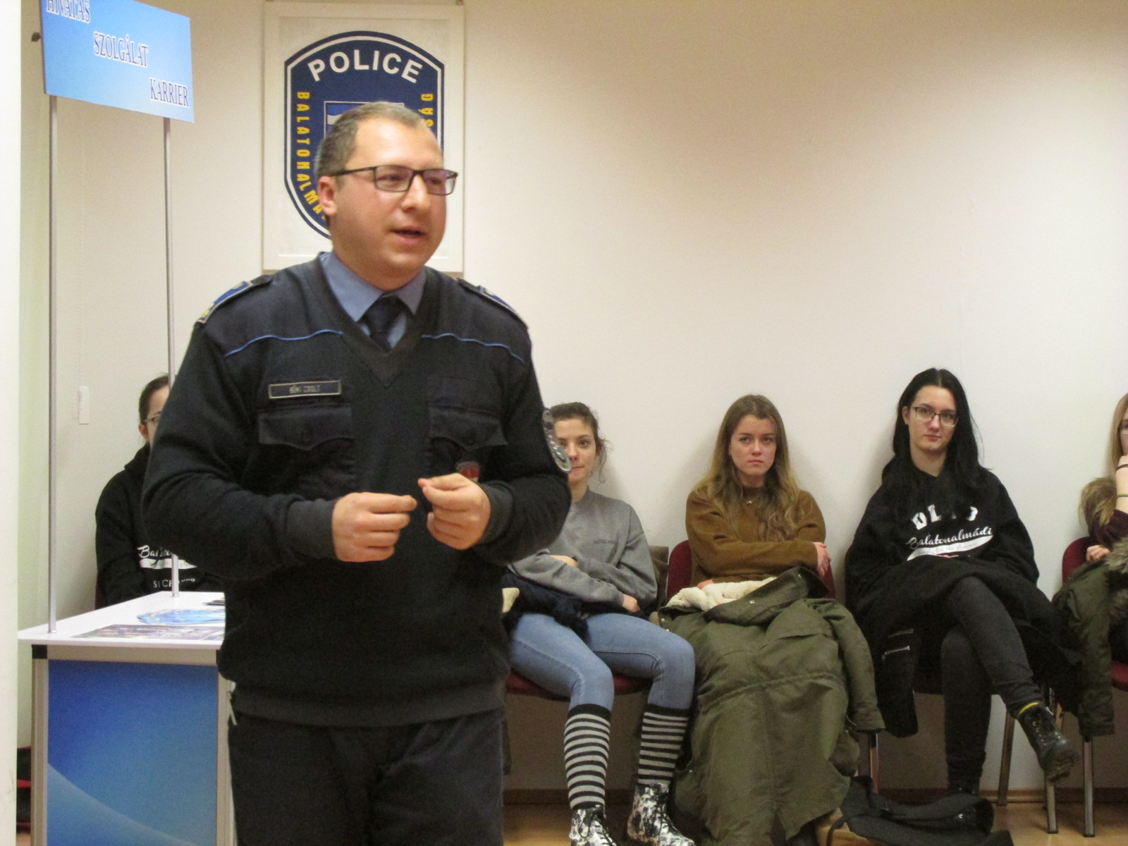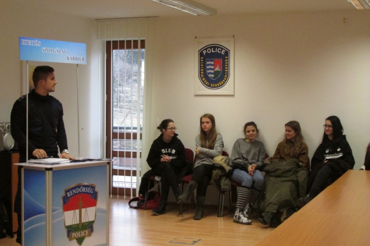 A helyi gimnáziumból érkező diákokat 2017. január 24-én délután a kapitányság tanácstermében várták a toborzó csoport tagjai és a Készenléti Rendőrség munkatársa.