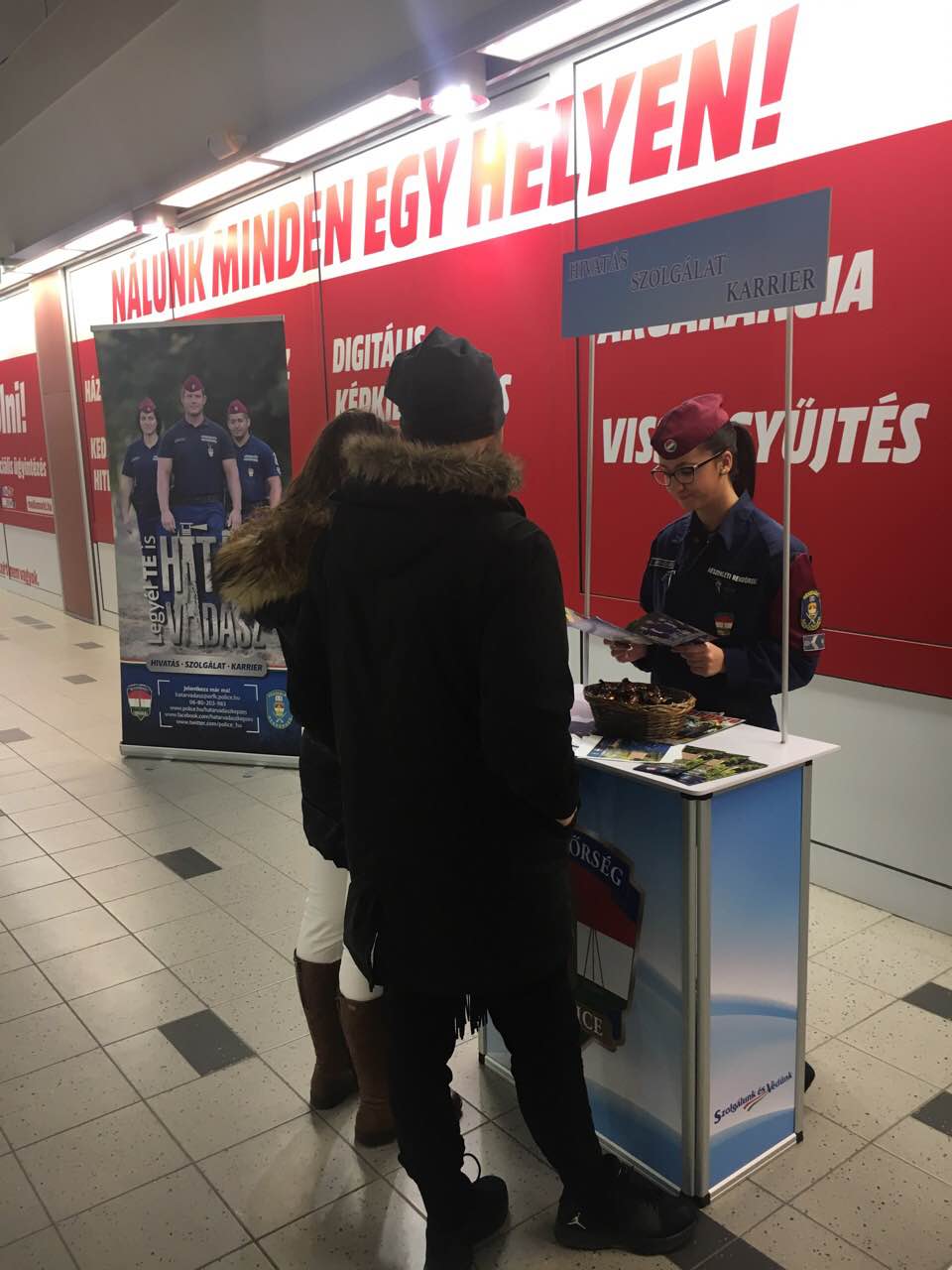A hét minden napján, több szombathelyi bevásárlóközpontban, kosárlabda-mérkőzésen, valamint Körmenden, az adventi vásár helyszínén is találkozhattak a határvadász-képzés iránt érdeklődők munkatársainkkal. A toborzó csoport tagjai minden jelentkezőnek részletes felvilágosítást adtak a jelentkezés feltételeiről és az ellátandó feladatokról.