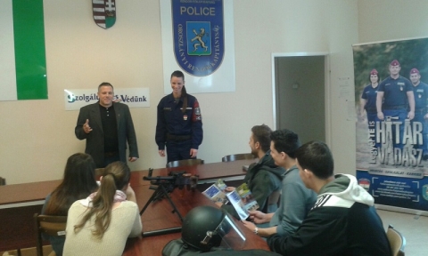 A rendőrök az Oroszlányi Rendőrkapitányságon adtak felvilágosítást a határvadász-képzésről.