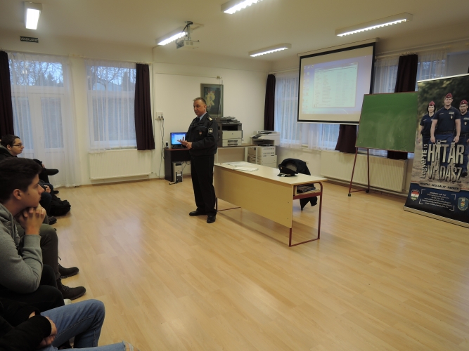 A Baranya Megyei Rendőr-főkapitányság toborzócsoportja 2017. december 13-án Pécsváradon, a II. Béla Szakközépiskolában tartott tájékoztatót. A résztvevők a jelentkezés, a felvételi eljárás és a képzés részleteiről kaptak információkat a rendőröktől.