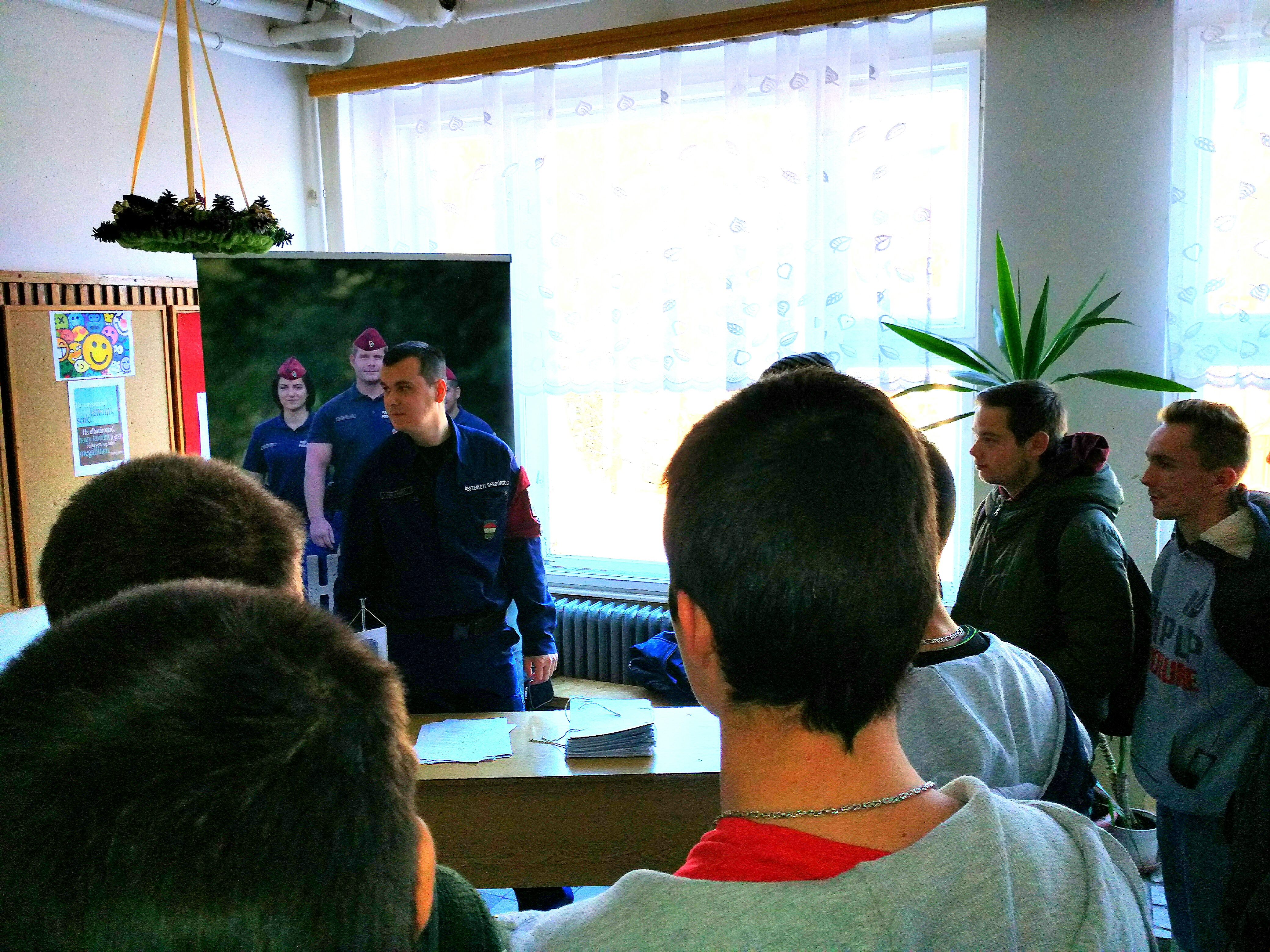 A toborzó csoport tagjai felvilágosítást adtak a jelentkezés és a képzés feltételeiről. Több tanuló jelentkezési egységcsomagot is vitt magával.