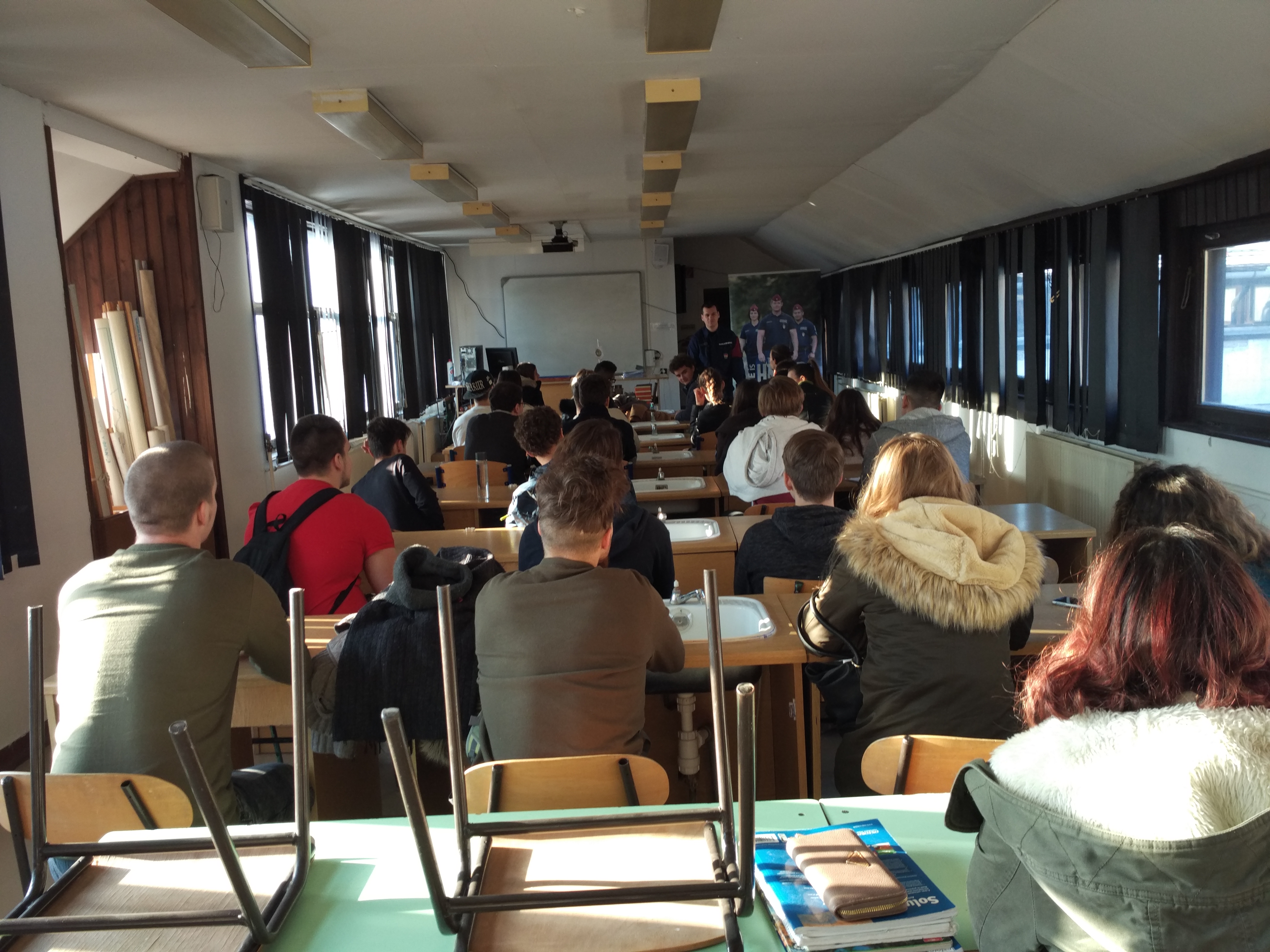 A toborzó csoport tagjai felvilágosítást adtak a jelentkezés és a képzés feltételeiről. Többen jelentkezési egységcsomagot is vittek magukkal.