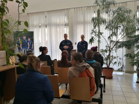 A toborzó csoport tagjai felvilágosítást adtak a jelentkezés és a képzés feltételeiről. Többen jelentkezési egységcsomagot is vittek magukkal.