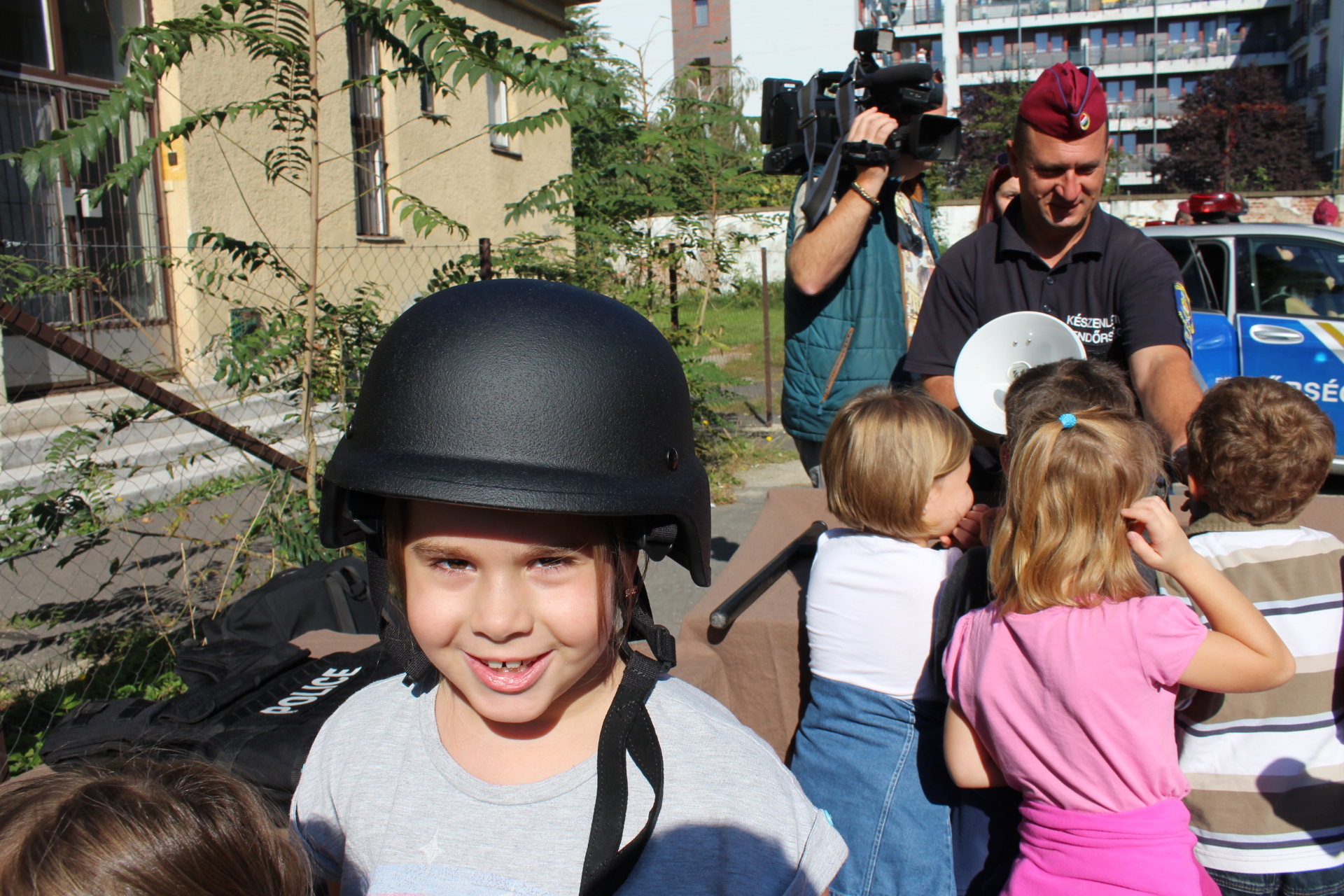 „Szeretem a rendőrséget” – harsogta a megafonba az a kis óvodás, aki többedmagával ellátogatott a Készenléti Rendőrség miskolci egységének nyílt napjára.