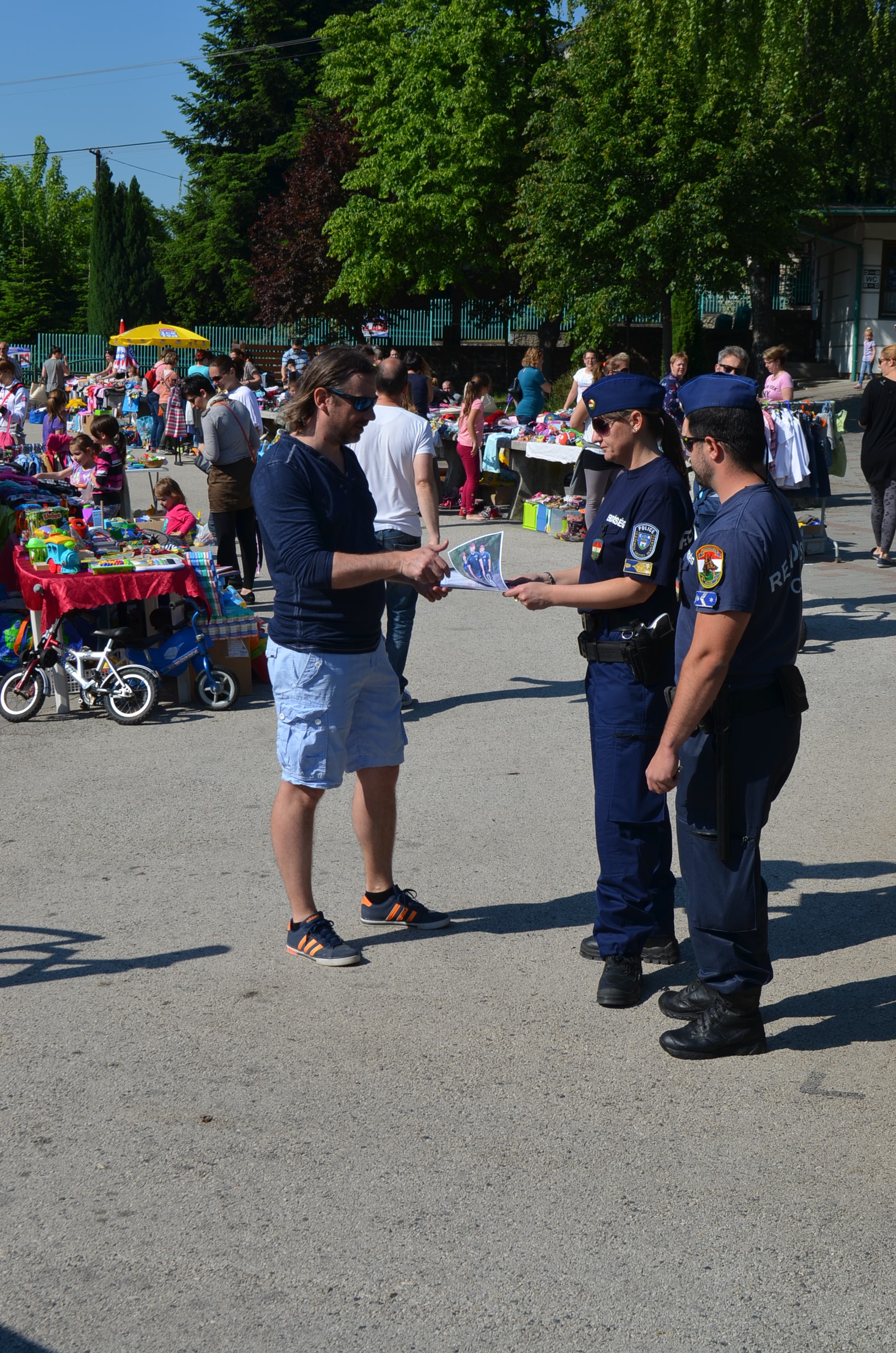A nyári forgalmat idéző piacon toboroztak a balatonalmádi rendőrök 2017. május 14-én, délelőtt. Délután a pápai rendőrök és a Készenléti Rendőrség munkatársa Pápán, az Erzsébet ligetben tartott X. Civil Majálison felállított rendőrségi standnál várták a határvadász szolgálat iránt érdeklődőket.