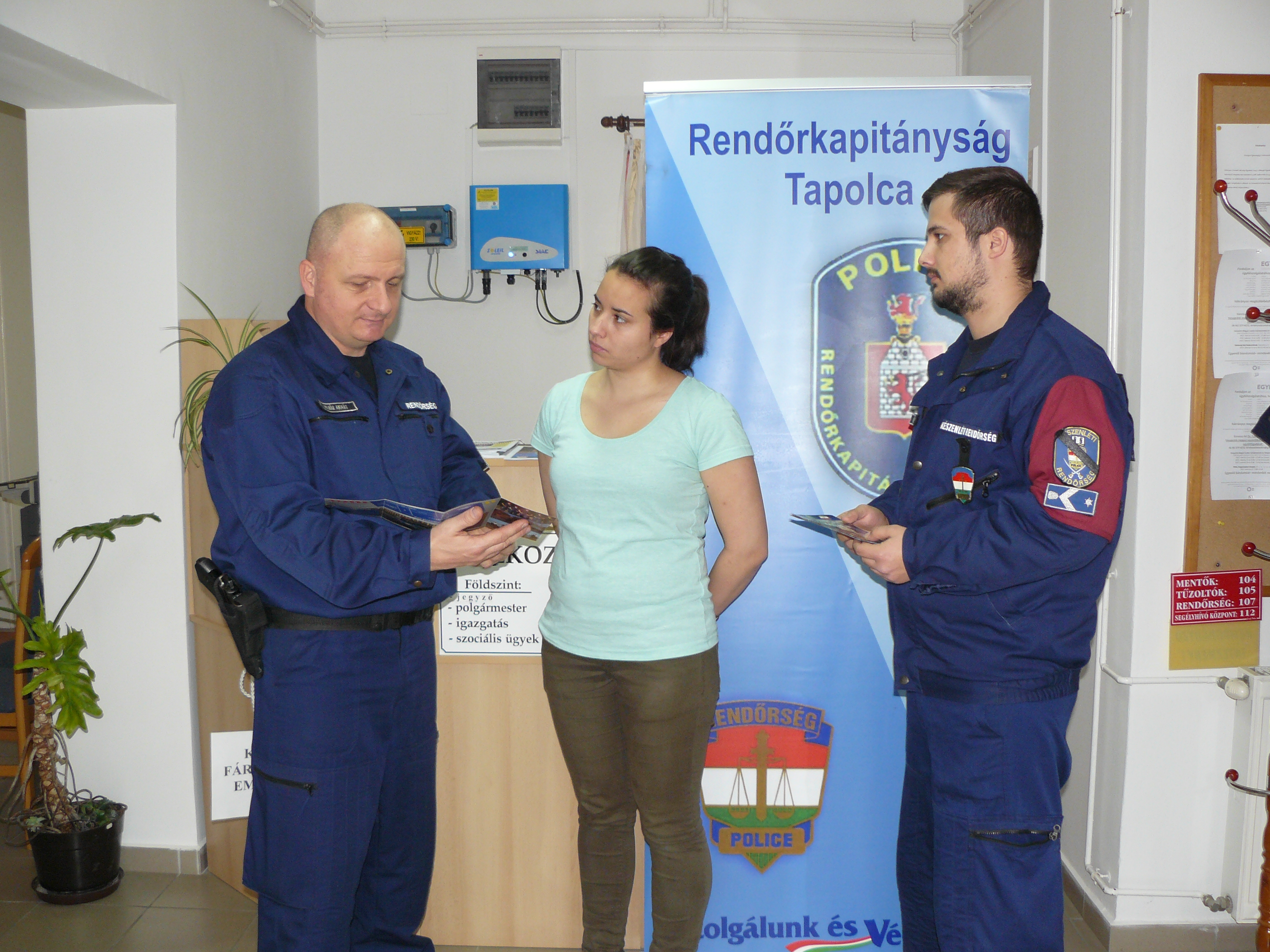 A Tapolcai rendőrkapitányság toborzó csoportjának tagjai a Készenléti Rendőrség munkatársával a határvédelmi feladatok ellátása iránt érdeklődőknek adtak részletes tájékoztatást Lesenceistvánd, Uzsa és Zalahaláp települések önkormányzatain 2017. február 20-án délelőtt.
