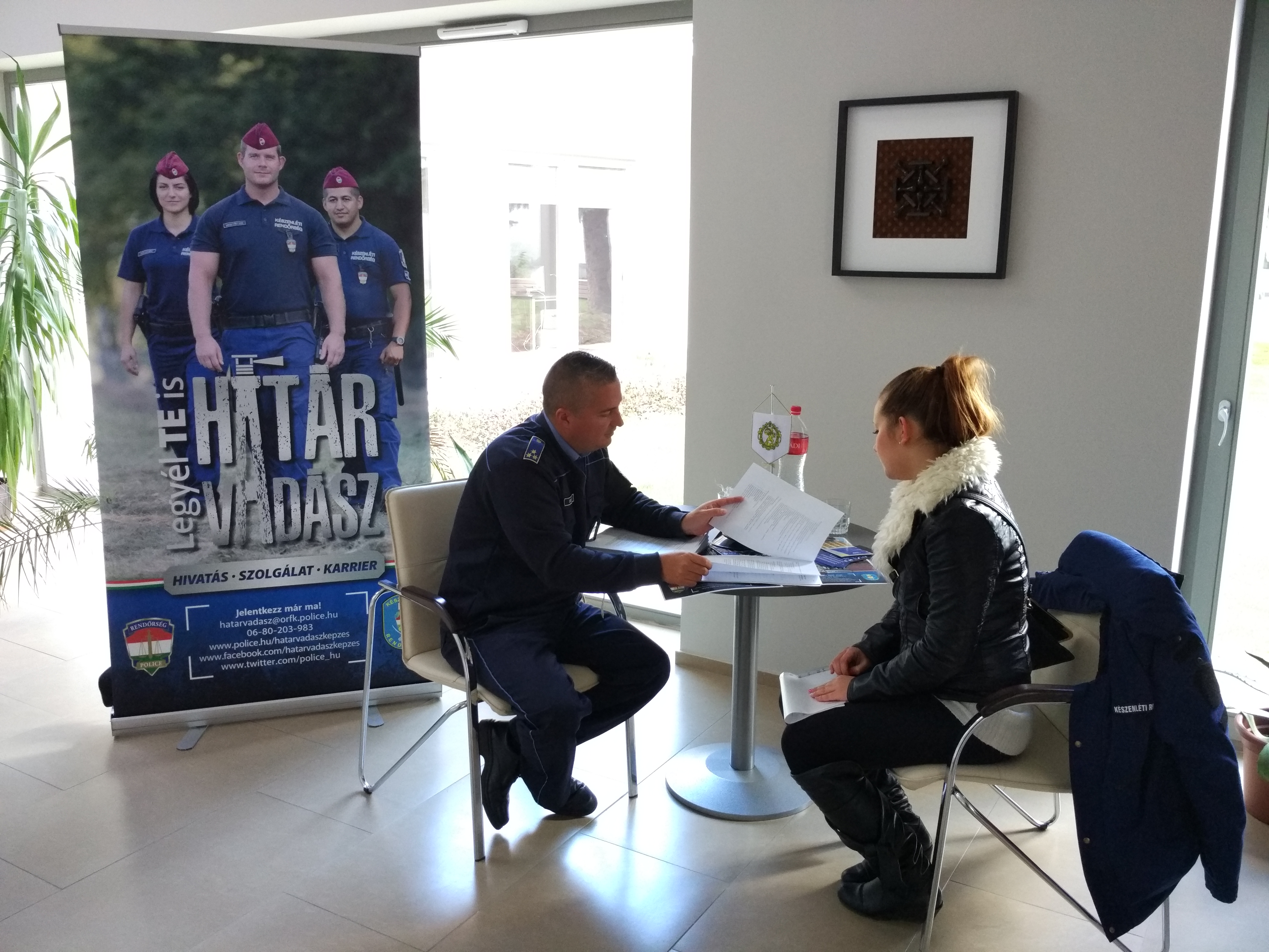 A Pest Megyei Rendőr-főkapitányság toborzó csoportja 2016. november 3-án Visegrádon, a rendőrőrsön megrendezett nyílt napon várta azokat, akik a határvadász-képzés iránt érdeklődtek.