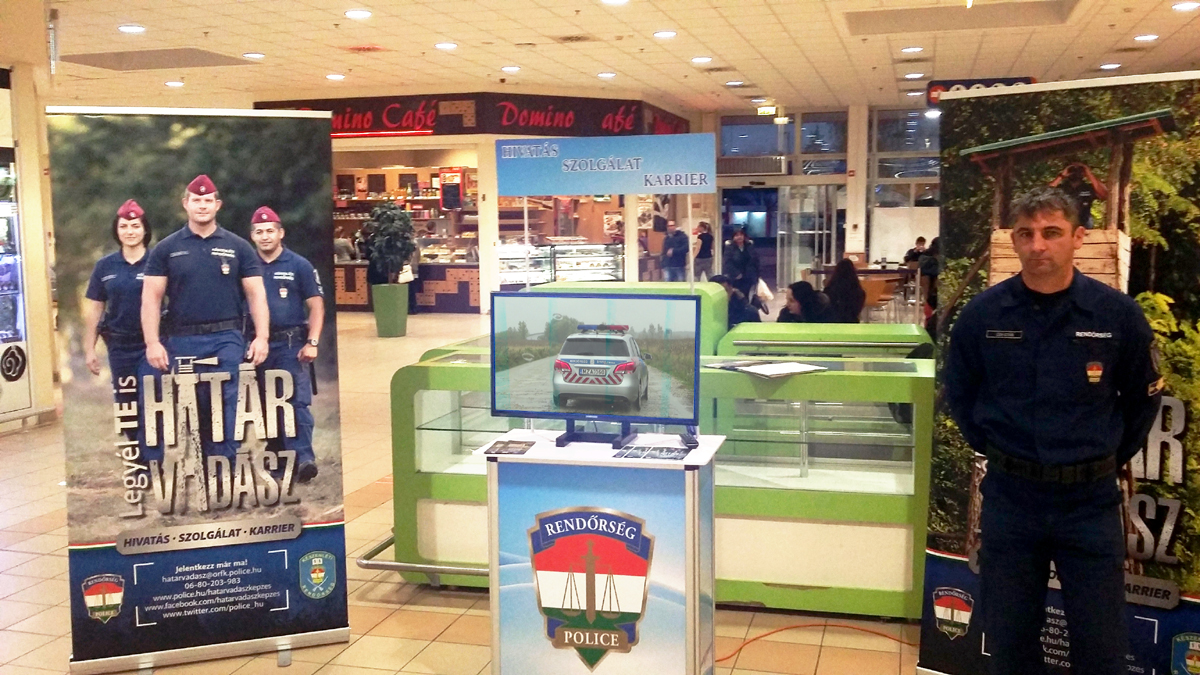 A Nógrád Megyei Rendőr-főkapitányság toborzó csoportja a balassagyarmati és a salgótarjáni TESCO áruházakban tájékoztatta az érdeklődőket a határvadász-képzés részleteiről és a felvételi követelményekről.