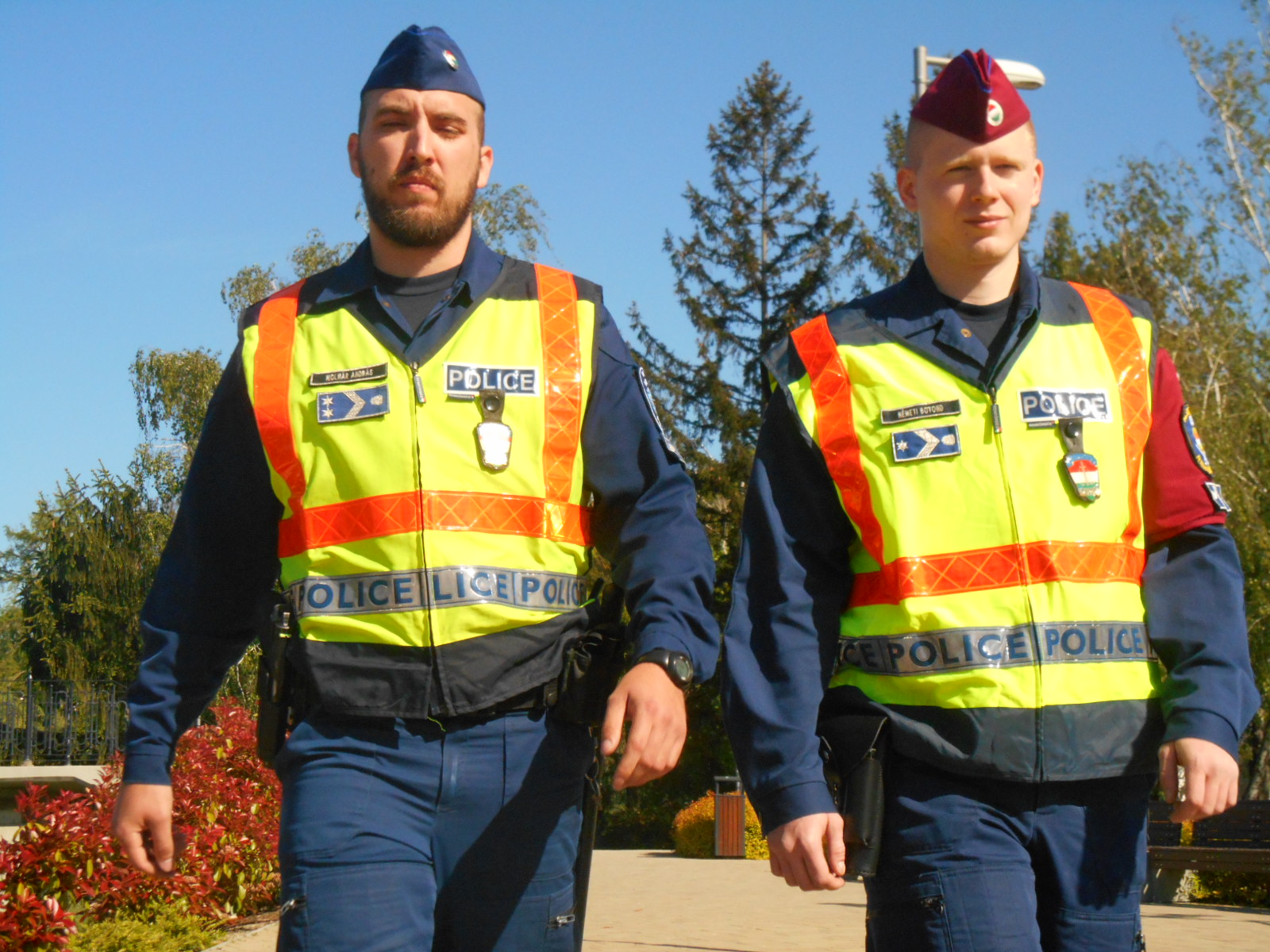 A képen jobbról látható Németi Botond próbaidős rendőr őrmester a Szombathelyi Rendőrkapitányságon töltötte gyakorlati idejét, majd a határvadász modulzáró vizsgát követően a Készenléti Rendőrség Nyugat-magyarországi Határrendészeti Igazgatósága 4. Határvadász Bevetési Csoportjához került járőrtárs beosztásba.