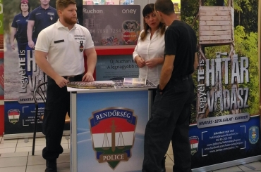 A megyei rendőr-főkapitányság toborzó csoportja a Mosoni Piactéren szólította meg a rendőri hivatás után érdeklődőket.
