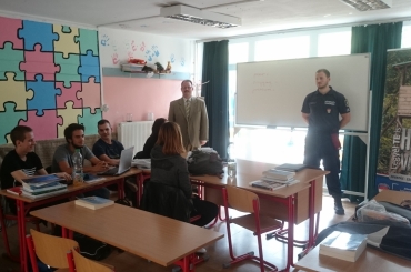 A Balatonfüredi Rendőrkapitányság toborzó csoportja 2016. szeptember 20-án délelőtt középiskolai végzős diákokat tájékoztatott a határvadász képzésről.