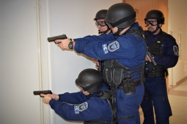 A Veszprém megyei rendőrök taktikai nyílt nap keretében Csopakon népszerűsítik a rendőri hivatást.