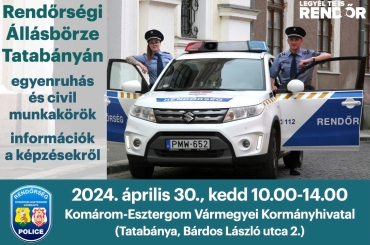 Egyenruhás és civil álláshelyeket mutat be a rendőrség április 30-án, kedden 10-14 óráig a vármegyei kormányhivatalban.