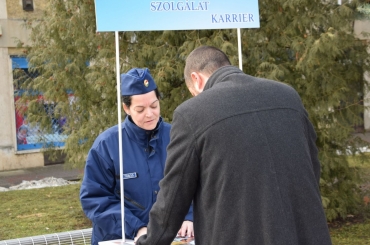 A toborzók megyeszékhely belvárosban várták a határvadász-képzés iránt érdeklődőket.