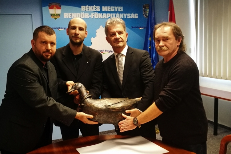 A rendőrök elfogták azt a férfit és nőt, akik ellopták egy vadkacsa szoborcsoport egyik részét a békéscsabai Élővíz-csatorna partjáról. A rendőrök lopás miatt büntetőeljárást indítottak ellenük, az ellopott szobrot pedig visszaadták a tulajdonosnak.