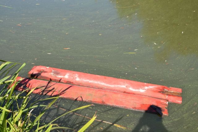 A tóba dobta a megrongált pad darabjait