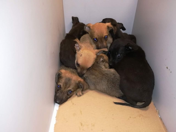 A hét kiskutyát a Felsőzsolcai Rendőrőrs udvarán lévő egyik üres garázsban szállásolták el, majd másnap egy kutyust egy helyi hölgy örökbefogadott.