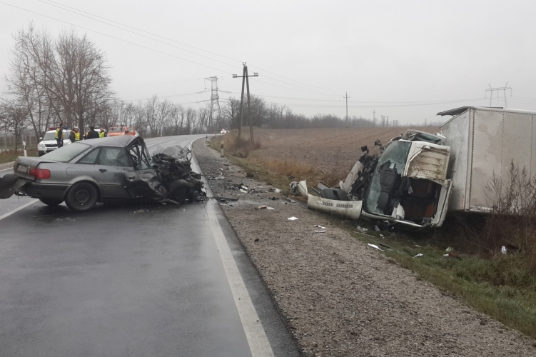 6 óra 58 perckor a 4-es számú főút 251. kilométerszelvényében, Újfehértó és Téglás között a lekapcsolt világítással haladó lopott teherautó a síkos úttesten áttért a szemközti sávba és frontálisan összeütközött az ott közlekedő személygépkocsival. Mindkét jármű vezetője beszorult a roncsok közé, mentésüket a rendőrök kezdték meg, majd a kiérkező tűzoltók speciális eszközökkel emelték ki őket. A sérülteket a mentők ellátták és kórházba szállították. A baleset helyszínén 10 óra 05 perckor oldották fel a teljes útlezárást, addig a rendőrök egy mellékútra terelték a forgalmat.