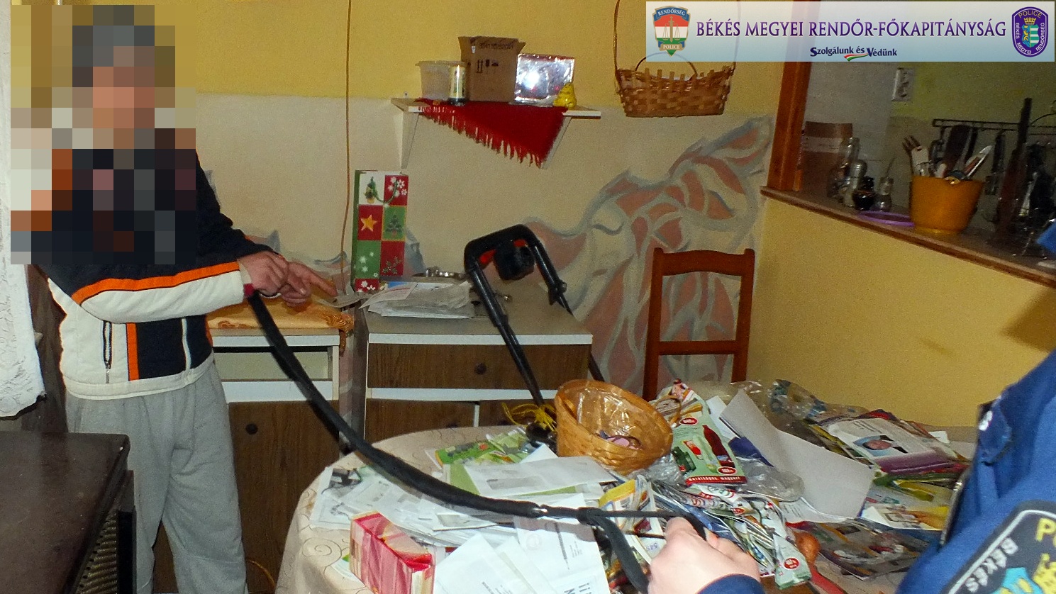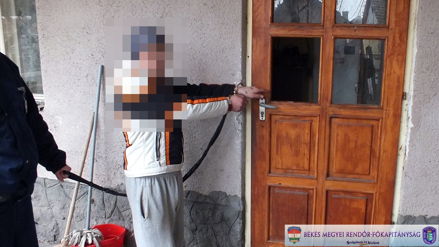 A Sarkadi Rendőrkapitányság 2015. január 27-én 13 óra 50 perckor kapott jelzést arról, hogy Sarkadon a Hajdú utcában egy ismeretlen férfi átmászott egy ház kerítésén. A rendőrök két percen belül a helyszínre értek. Az udvaron már nem láttak senkit, de a házból zajt hallottak, ezért átmásztak a kerítésen. Az épület bejárati ajtaja zárva volt, azonban az egyik ablaküveg korábban kitört. A rendőrök kinyitották az ajtót és a konyhában megláttak egy férfit, aki az arcát fekete sapkával takarta el. Mikor felszólították, hogy jöjjön ki, bebújt egy terítővel letakart étkezőasztal alá. A főtörzsőrmester és a törzsőrmester a 18 éves fiatalt elfogták és átvizsgálták a ruházatát. A zsebeiben több olyan dolgot találtak, amiket a házban vett magához. Mikor elszámoltatták elismerte, hogy lopni ment a házba, a kitört üveg helyén mászott be a lakásba. A nála talált tárgyakat a bűncselekmény elkövetését követően el akarta adni. A Sarkadi Rendőrkapitányság a 18 éves sarkadi R. Krisztiánt lopás vétség elkövetésének megalapozott gyanúja miatt bűnügyi őrizetbe vette.