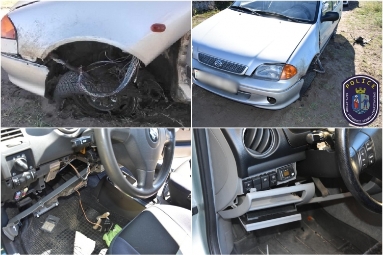 A jármű egy földúton került elő, összetörve, defektes kerékkel, felnyitott motorháztetővel. Az anyósülésen egy férfi aludt. Kiderült, hogy a tolvaj balesetet szenvedett a kocsival, majd miután nem tudott továbbhaladni, egyszerűen álomra hajtotta a fejét a gépkocsiban. A férfivel szemben felmerült a bódult vezetés gyanúja, ezért a rendőrök vér- és vizelet-mintavételre előállították.