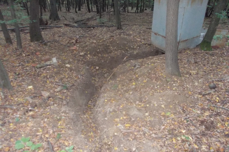A rendőrség megalapozott gyanúja szerint a tetten ért kábeltolvajok több méter hosszú árkot ástak az erdőben, hogy hozzá juthassanak a réz és alumínium vezetékekhez.