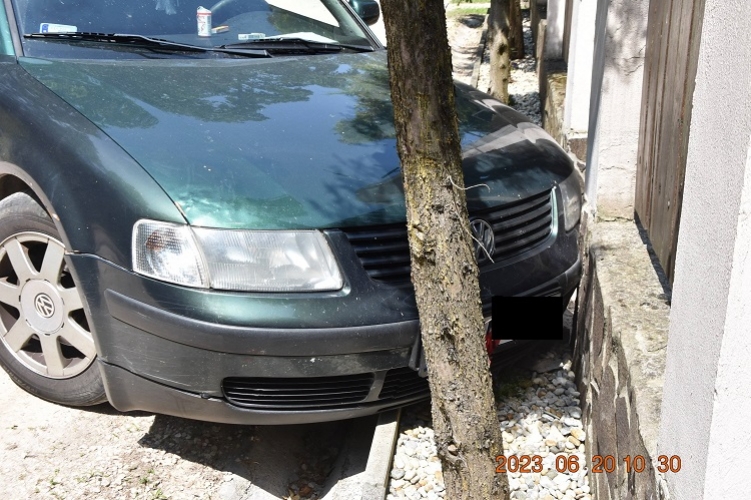 Szárligeten történt balesetről érkezett bejelentés a rendőrségre június 20-án reggel. A járőrök megállapították, hogy egy személyautóval a vízelvezető árkon áthajtottak, majd kerítés falának ütköztek. Kiderült az is, hogy a gépkocsit nem sokkal előtte ellopták a Vasút utcából. Látható volt, hogy a sofőr képtelen volt a gépkocsiból kiszállni a bódult állapota miatt. Szakálla és az arca is fehér portól volt szennyezett.