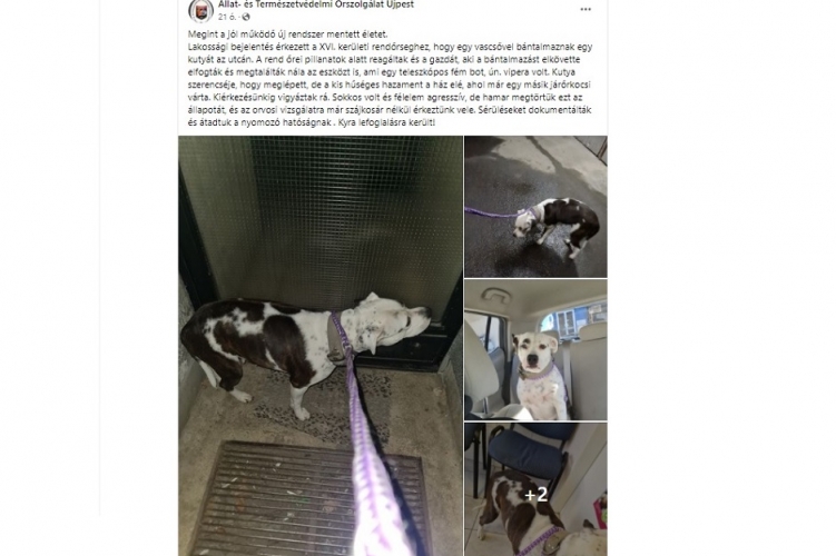 A Budapesti Rendőr-főkapitányság XVI. Kerületi Rendőrkapitánysága állatkínzás vétsége és más bűncselekmények gyanúja miatt folytat eljárást egy budapesti férfival szemben, aki a gyanú szerint 2022. február 21-én este egy teleszkópos fémbottal ütlegelte a kutyáját a főváros XVI. kerületében.