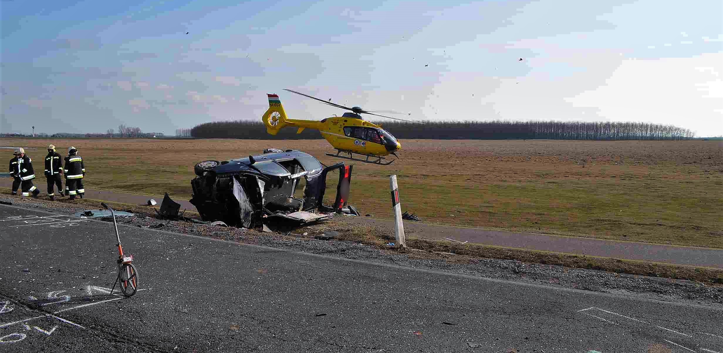 A 33 éves német nő nem megfelelően választotta meg a gépkocsija sebességét az erős szélben. A Berettyóújfalunál történt közlekedési balesetben öten sérültek meg.
