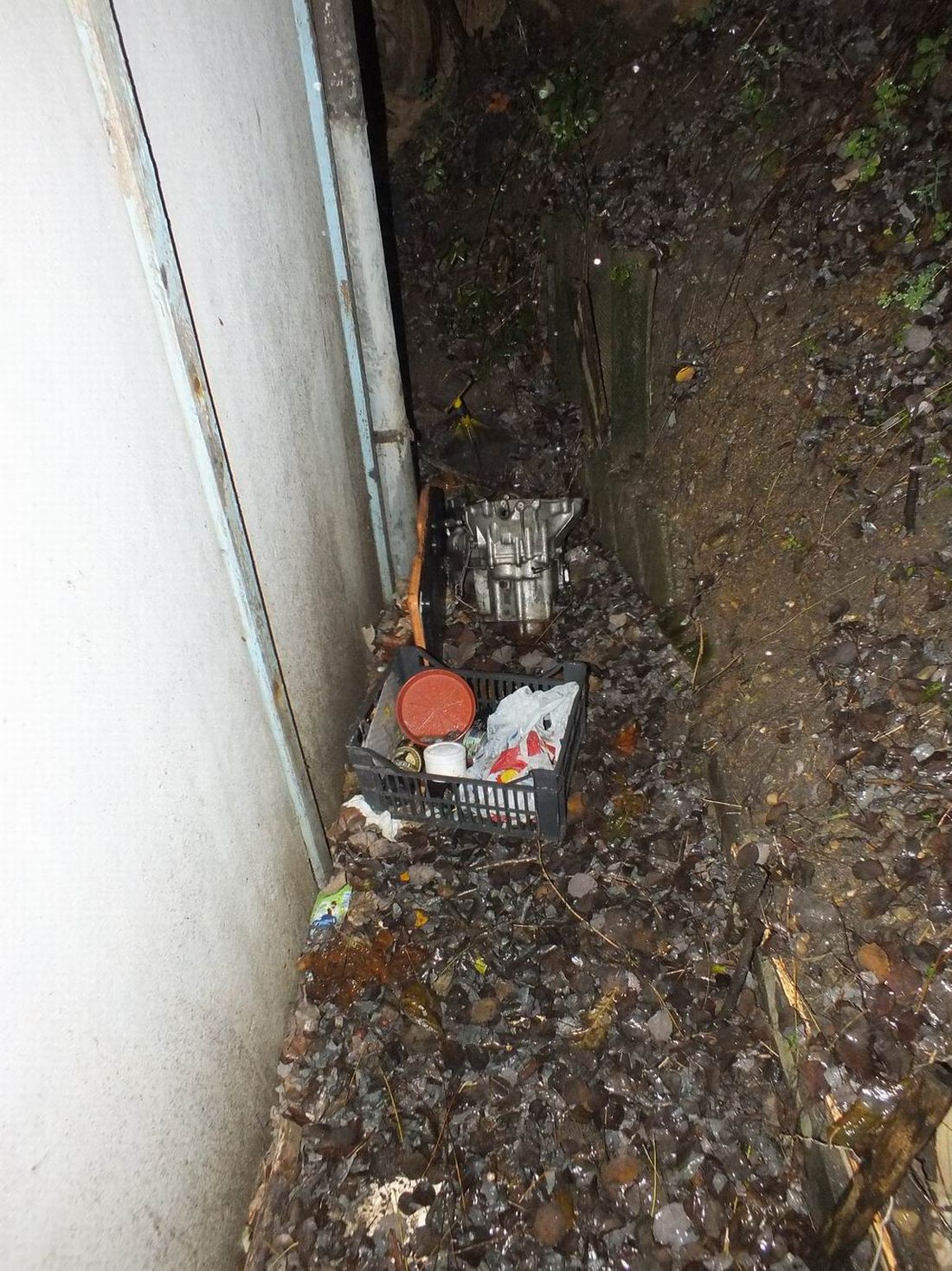 A sértett a garázs mellett összekészítve találta meg a személygépkocsijából kiszerelt váltóművet és egyéb használati tárgyakat.