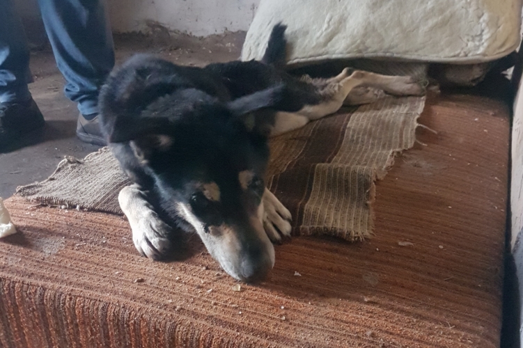 A rendőrök azonnal a megadott címre mentek, ahol egy elhagyatott ingatlan, kerítés nélküli udvarán egy fa körül olyan nyomokat találtak, amelyek arra utaltak, hogy oda egy kutya volt kikötve. A ház nyílászárói részben hiányoztak így az egyenruhások az egyik helyiségbe benézve egy régi ágyon vizes szivacsokkal betakarva megpillantottak egy kutyát. Az állat élt, de a szólításokra nem reagált, járni nem tudott, fogai vacogtak.