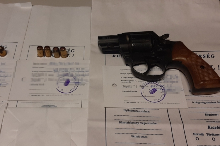 Egy szolnoki férfi megjelent az egyik helyi pizzéria előtt 2021. július 23-án 11 óra körül, és az ott tartózkodó ismerősét korábbi nézeteltérésük miatt megöléssel fenyegette. Ezt nyomatékosítva nadrágja zsebéből elővett egy forgótáras gáz-riasztó pisztolyt, amit a sértettre fogott. A fenyegetőző férfi ezután a sértettet több alkalommal ököllel megütötte, majd dulakodni kezdtek, ami közben sikerült a támadótól megszerezni a pisztolyt. Ezt követően a bántalmazó távozott a helyszínről. A rendőrök bűncselekmény elkövetésének gyanúja miatt előállították a 27 éves férfit a Szolnoki Rendőrkapitányságra és gyanúsítottként kihallgatták. Az eljárás során megállapításra került, hogy a jogsértő már előző nap is megfenyegette a férfit annak megölésével. A nyomozók a fegyvert a hozzá tartozó lőszerekkel együtt lefoglalták.