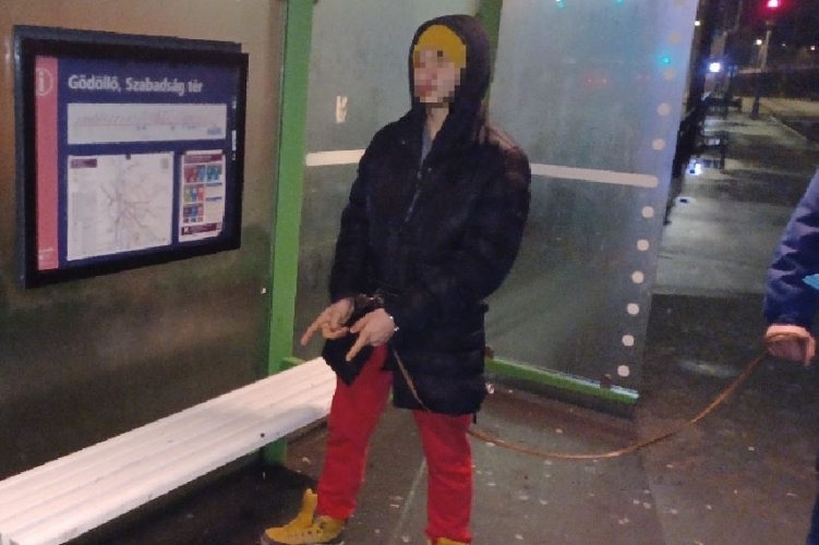 Egy rémült tinédzser bejelentésére indultak meg a gödöllői nyomozók 2023. január 22-én délelőtt, miután a barátnőjével telefonálás közben egy ismeretlen, piros nadrágot és fekete kapucnis kabátot viselő férfi lépett oda hozzá beszélgetést kezdeményezve. A közös cigizés és sétálás egy pillanat alatt erőszakos fordulatot vett. A férfi egy erős mozdulattal, egyik kezével megfogta a sértett kabátját, a másikkal a telefonját akarta kirántani, sikertelenül. Rángatni kezdte a fiút, mire a kiskamasz földre esett. Támadója letépte a bankkártyával, pénztárcával, telefontöltővel tömött táskáját és elszaladt.