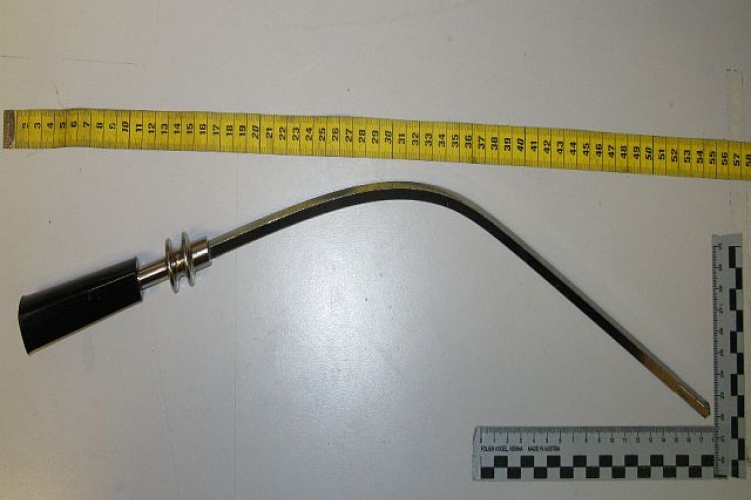 A járőrök a helyszín átvizsgálásakor egy utcán parkoló tehergépjármű és a ház közötti területen egy körülbelül 50 centiméter hosszúságú 8-10 milliméter átmérőjű fém tárgyat találtak, melyről a 15 éves fiú úgy nyilatkozott, hogy B. G. azzal ütötte meg őt.