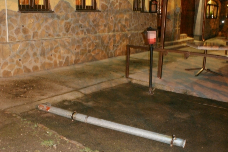Ezt követően S. Csaba kiment az utcára és kitépett a falból egy darab ereszcsatornát, majd azzal verni kezdte a vendéglő ajtaját. Később egy közelben parkoló autó hátsó ablaktörlőjét törte le. A férfi a kiérkező rendörök intézkedésének is ellenállt.