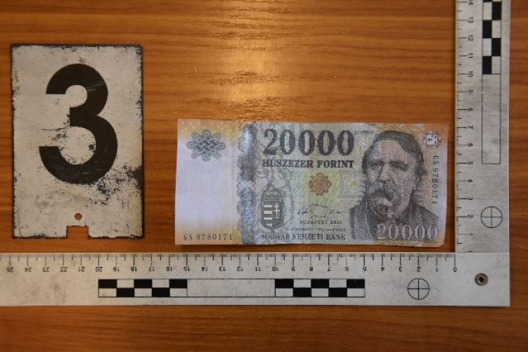 Az egyik szekszárdi dohánybolt eladója tett bejelentést a rendőrségre 2019. április 23-án délután, mert egy nő az üzletben a boltos véleménye szerint hamis pénzzel fizetett. A helyszíni intézkedés során a rendőrök az üzletben az akkor még hamisnak hitt bankjegyet lefoglalták. Az ügyben büntetőeljárást indítottak pénzhamisítás bűntett elkövetésének gyanúja miatt. A kirendelt szakértő megállapította, hogy a húszezres valóban hamis. Az egyenruhások gyanúsítottként hallgatták ki pénzhamisítás bűntett elkövetésének megalapozott gyanúja miatt azt a 30 éves szekszárdi nőt, aki a boltban a hamis pénzzel vásárolt.
